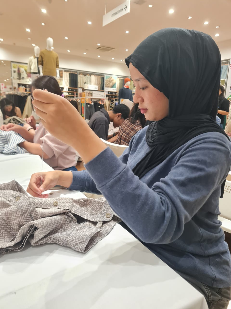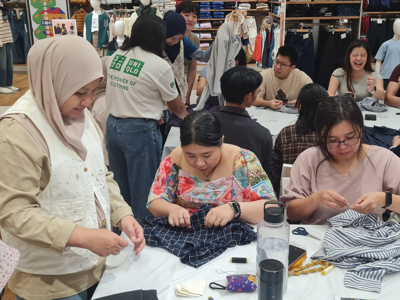 Employees participated in hands-on upcycling sessions using repurposed fabric, learning circular design principles and creating their own functional items.